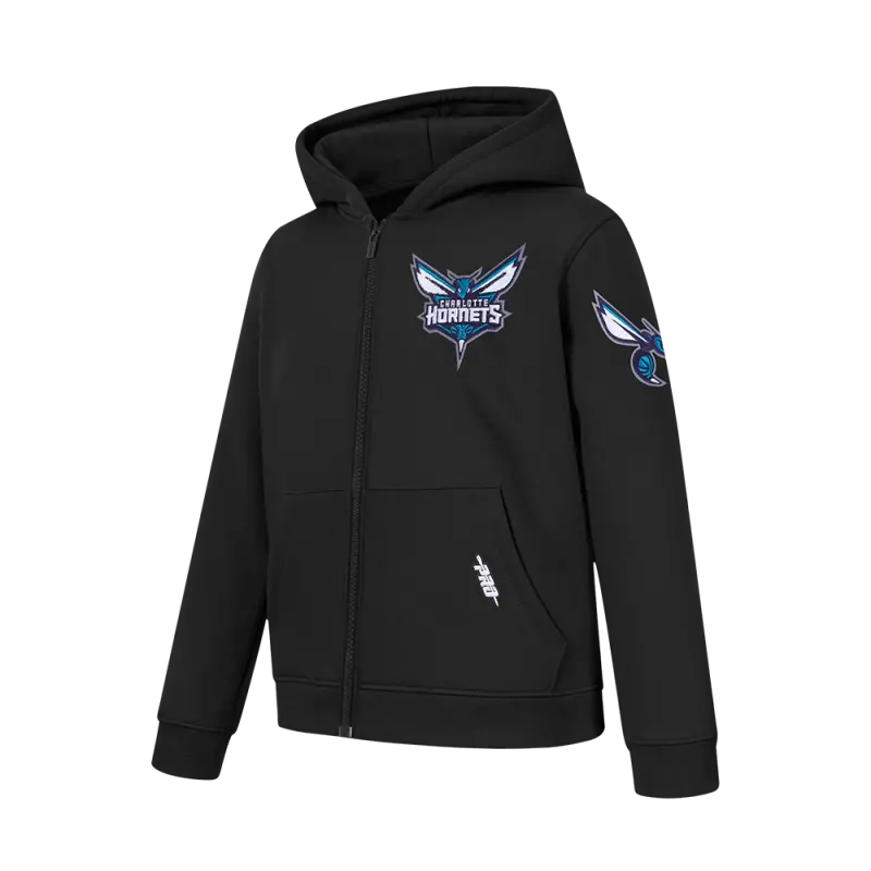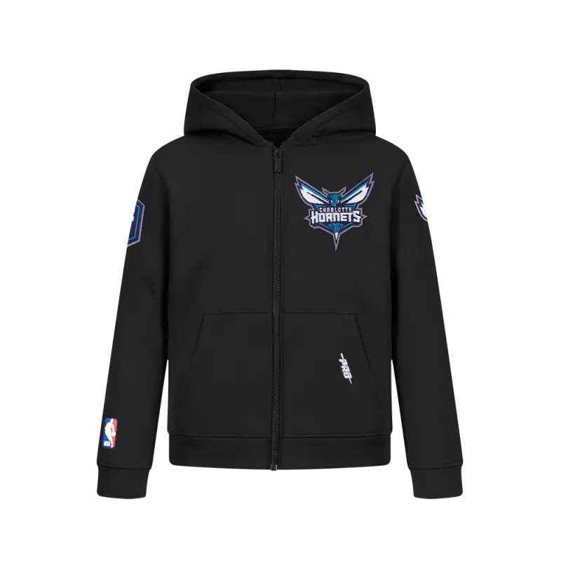 NBA CHARLOTTE HORNETS CLASSIC BIG BOY’S FLC FZ PO HOODIE (BLACK)
