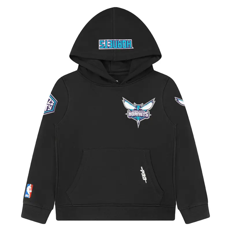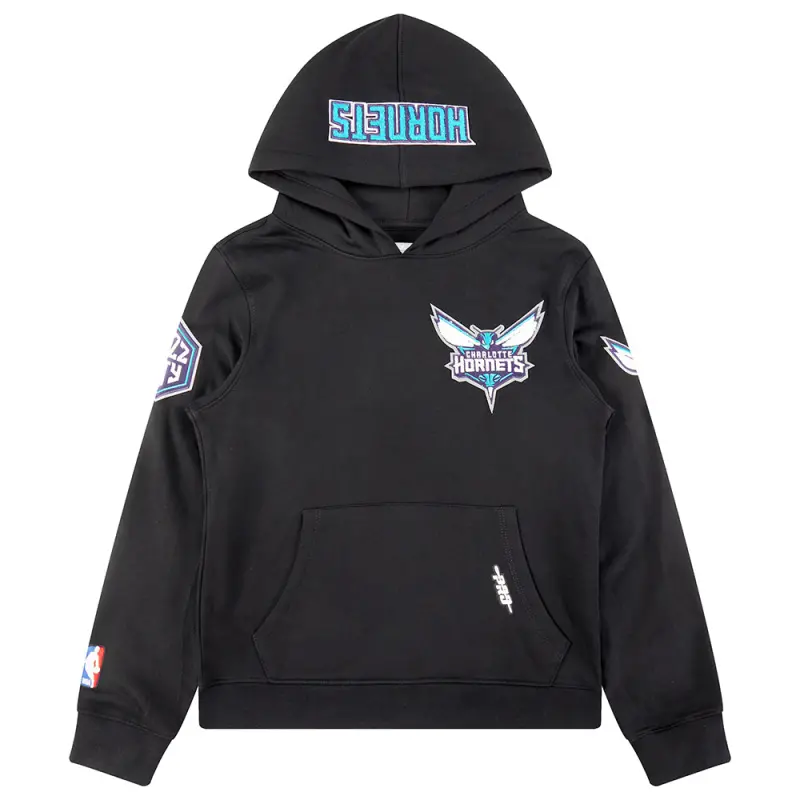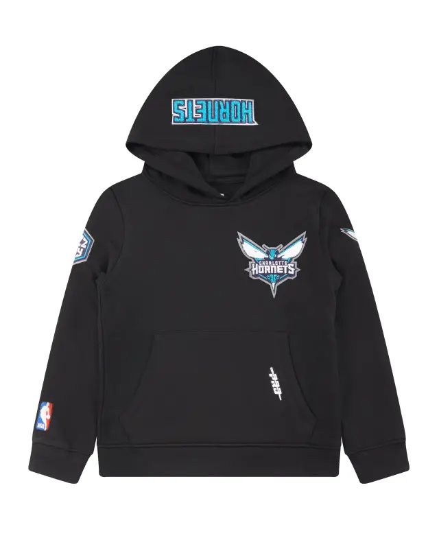 NBA CHARLOTTE HORNETS CLASSIC BIG BOYS FLEECE PULLOVER HOODIE (BLACK)
