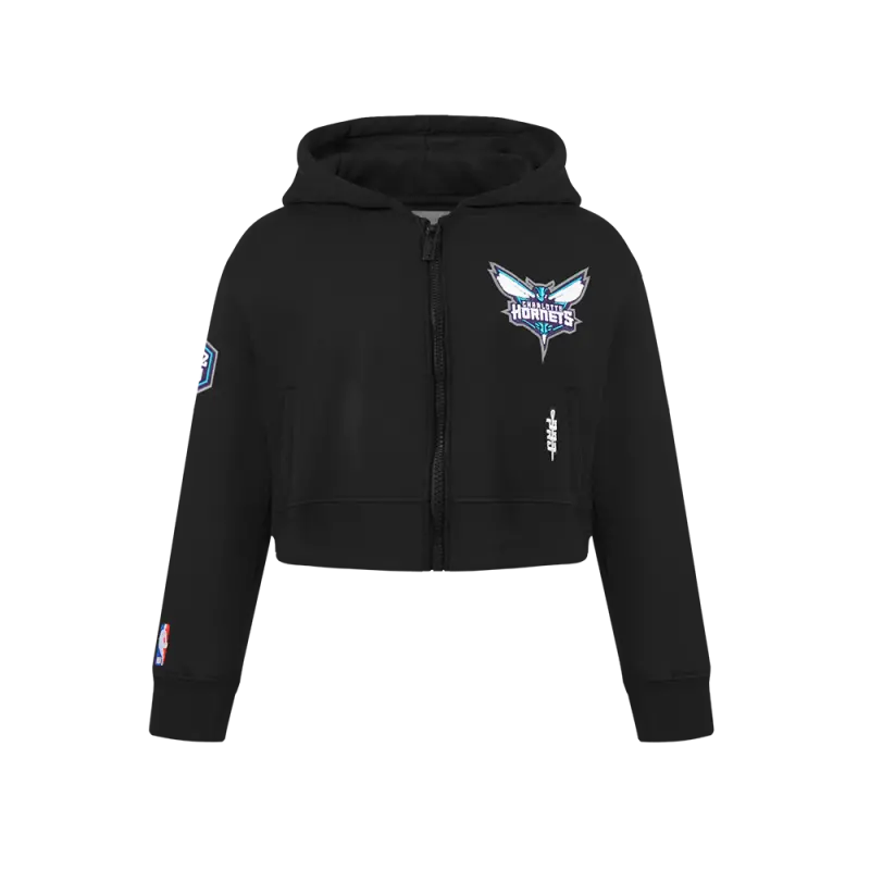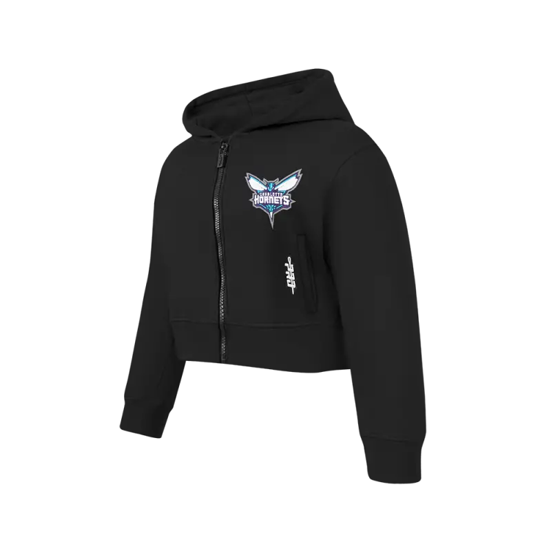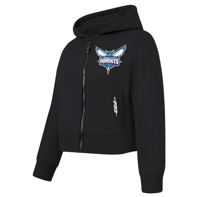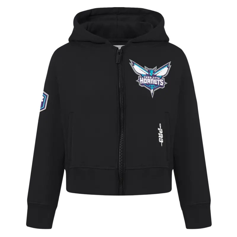 NBA CHARLOTTE HORNETS CLASSIC BIG GIRLS FLEECE FULL ZIP HOODIE (BLACK)