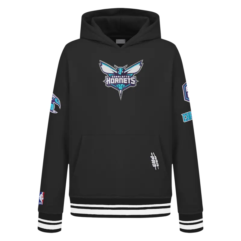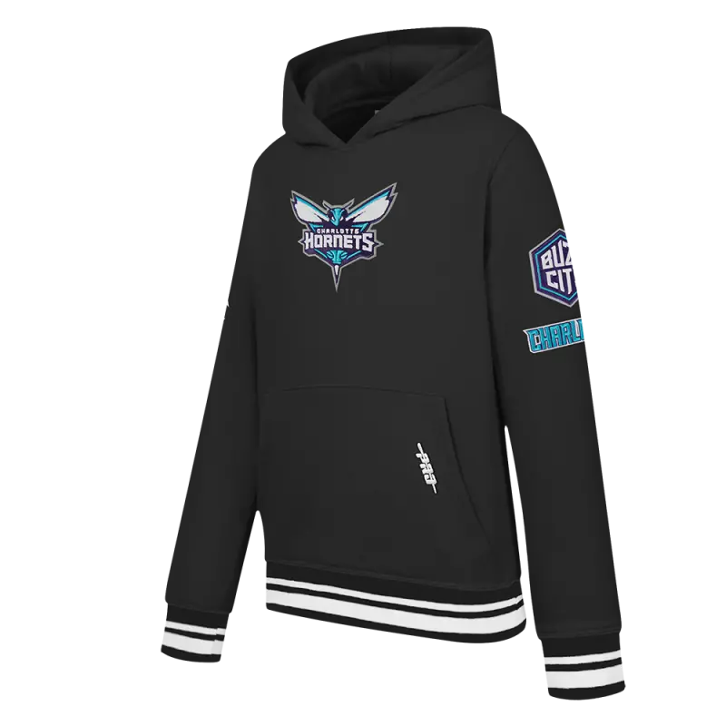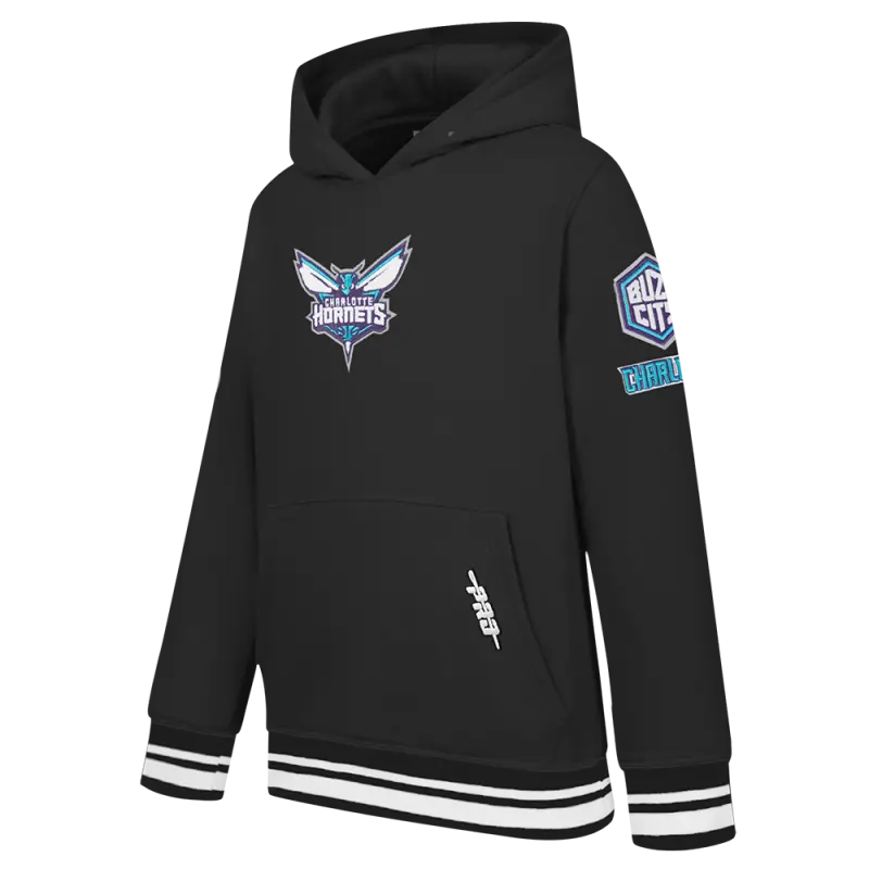 NBA CHARLOTTE HORNETS RETRO CLASSIC BIG BOYS RIB FLEECE PULLOVER HOODIE (BLACK)