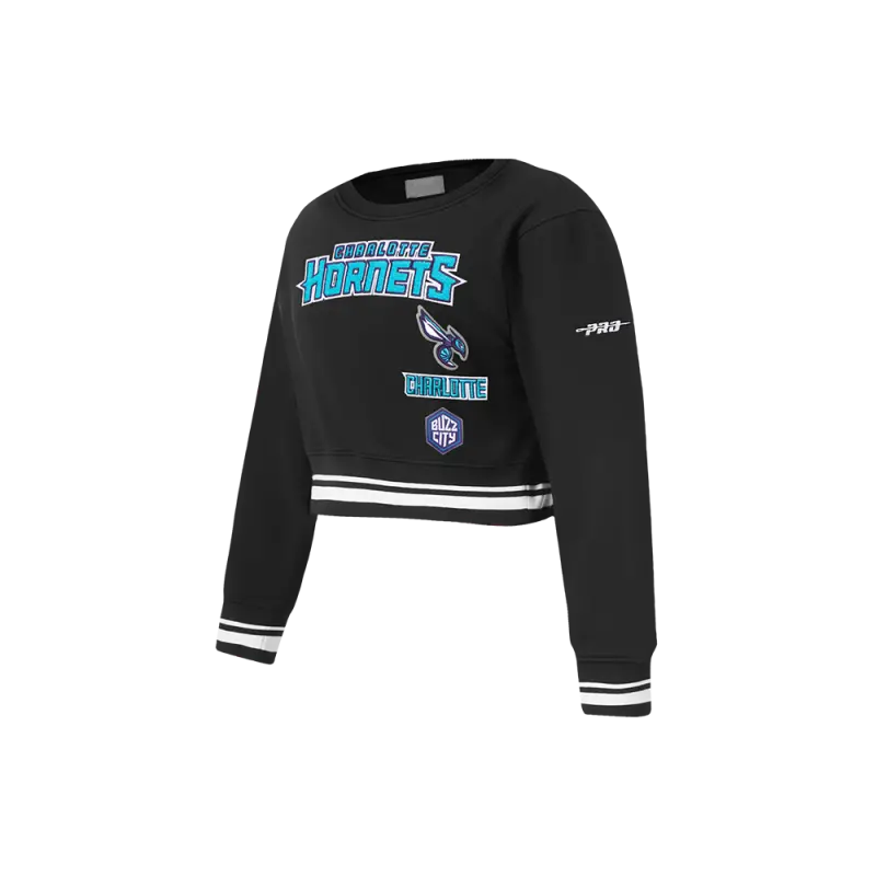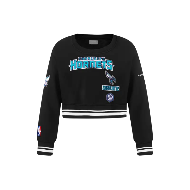 NBA CHARLOTTE HORNETS NEUTRAL WOMEN’S CROPPED PULLOVER HOODIE (BLACK)