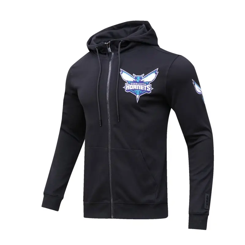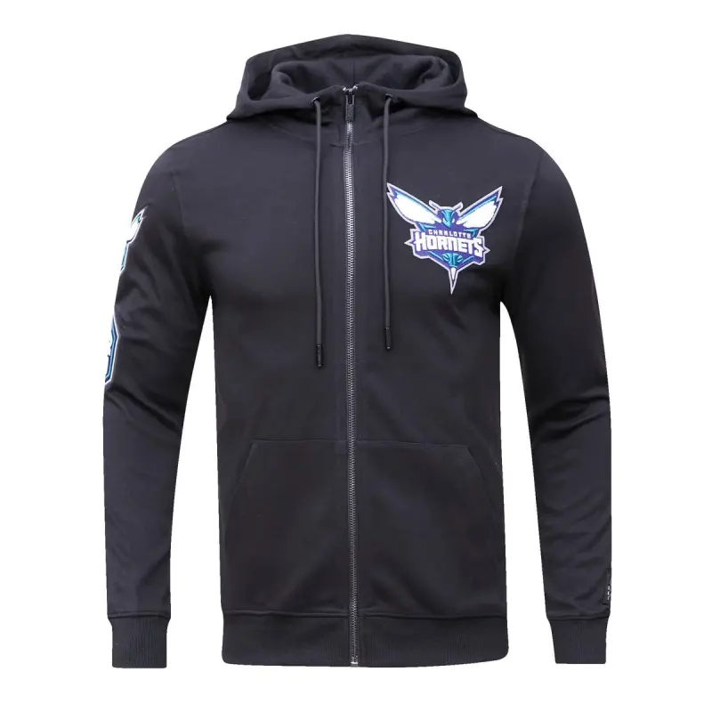 NBA CHARLOTTE HORNETS CLASSIC CHENILLE MEN’S FULL ZIP PULLOVER HOODIE (BLACK)