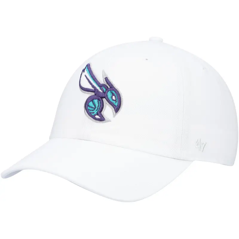 Men’s Charlotte Hornets ’47 White Team Clean Up Adjustable Hat