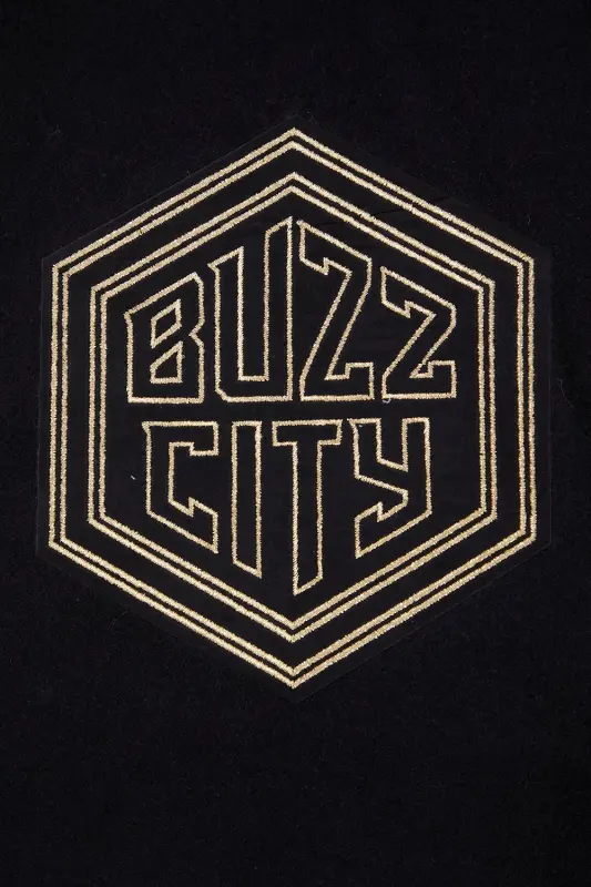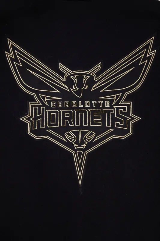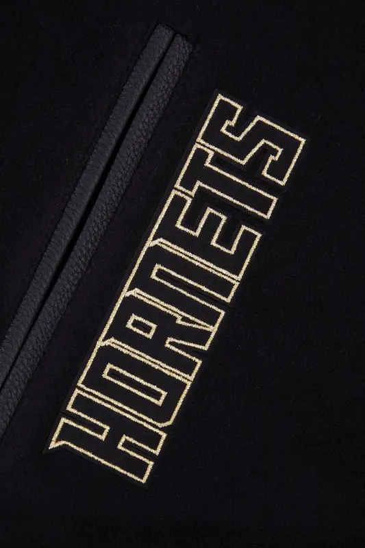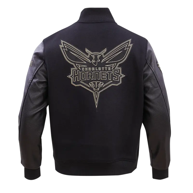 NBA CHARLOTTE HORNETS BLACK \u0026 GOLD MEN’S WOOL VARSITY JACKET (JET BLACK)